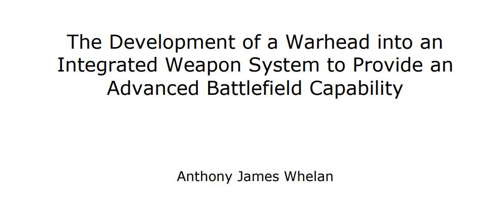 本论文基于一个研究领域:多效应武器(MEW)。多个国家正在对多效应武器进行研究。这项研究的目的不是提供一种适用于所有武器的解决方案,一种灵丹妙药,其目的是扩大一种系统的用途,使其可用于多种用途。尽管研究和产品开发--尤其是在美国--仍在继续,但迄今为止还没有一种弹头系统能达到所寻求的效果类型。因此,英国政府试图了解需要哪些技术才能实现真正灵活的弹头系统,从而能够击溃大型主战坦克、重装甲步兵战车、软皮战车、步兵和城市建筑。为此,对 MEW 弹头系统进行了数值建模、设计和演示。