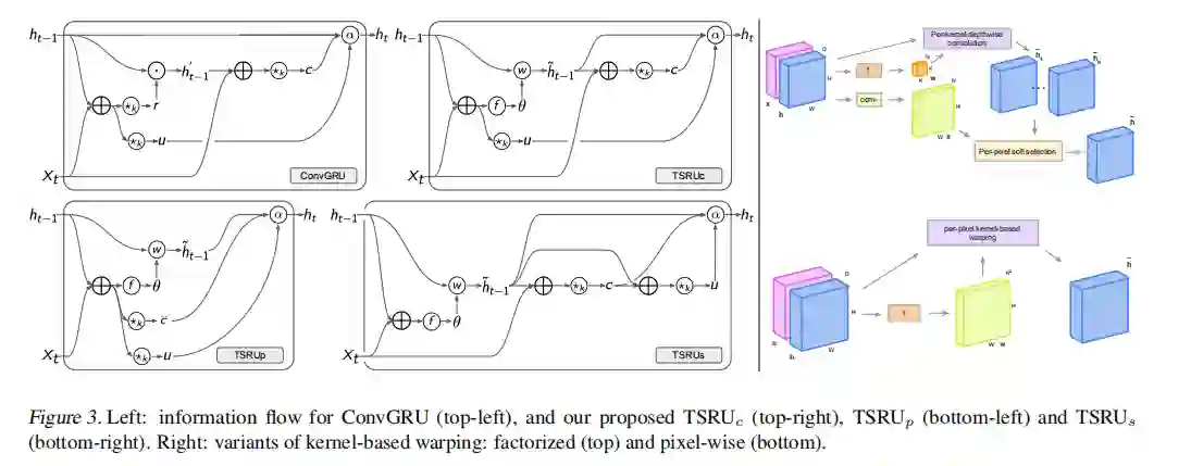 对抗式生成建模技术的最新突破使模型能够生成高质量的视频样本,即使是在大型和复杂的真实视频集上也是如此。在这项工作中,我们专注于视频预测的任务,其中给定了从视频中提取的帧序列,目标是生成合理的未来序列。我们首先通过对鉴别器分解进行系统的经验研究并提出一种比以前的方法产生更快的收敛性和更高性能的体系结构来改善现有技术。然后,我们分析生成器中的循环单元,并提出一种新颖的循环单元,该单元根据预测的类似运动的特征转换其过去的隐藏状态,并对其进行优化以处理遮挡,场景更改和其他复杂行为。我们表明,该循环装置始终优于以前的设计。最终模型导致了最先进性能的飞跃,在大规模Kinetics-600数据集上获得的测试集Frechet´视频距离从69.2降低到25.7。