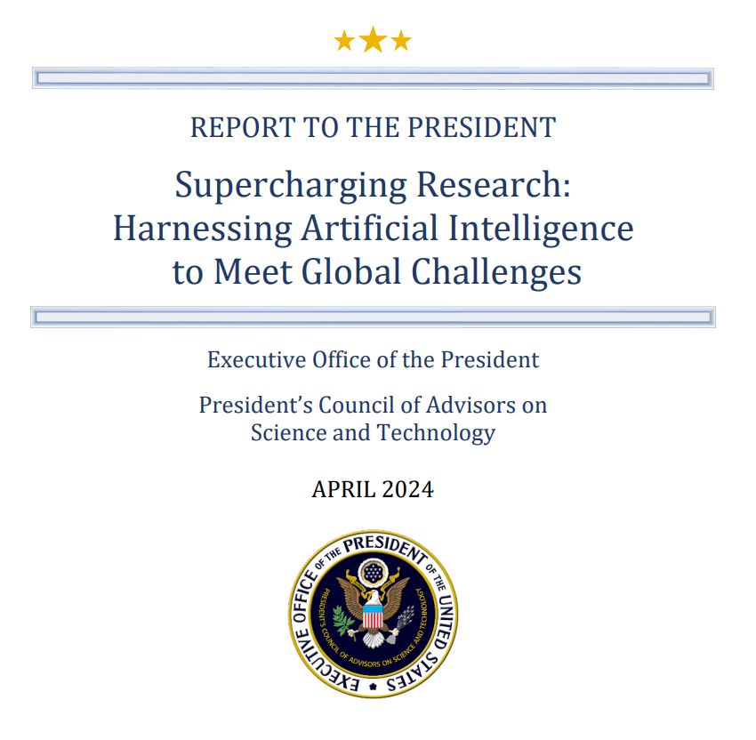 人工智能(AI)有可能为研究人员提供加速科学发现和技术进步的工具,从而彻底改变应对人类最紧迫挑战的能力。生成式人工智能可以在庞大的数据集和大量计算的基础上创建内容,其变革性尤为明显。生成式人工智能的例子包括大型语言模型、图像生成模型和生成式科学模型。拜登总统在 2023 年 10 月 30 日发布的《关于安全、可靠地开发和使用人工智能的综合行政命令》中,责成 PCAST 报告 "人工智能......在旨在应对重大社会和全球挑战的研究中的潜在作用"。