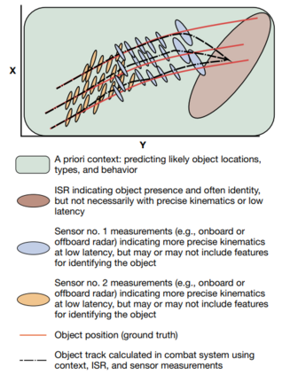一个作战系统必须合并、融合和解除许多来源的跟踪数据,以产生一个单一的可用的跟踪图片,供决策使用。这包括所有的本地传感器,以及来自战术数据链路(如Link 16/11)的轨迹数据和来自传感器网络(如CEC)的测量和轨迹数据。主要的挑战是所收到的数据的多样性,以及需要使一个单位的轨迹管理过程与多个单位的轨迹管理过程具有互通性。例如,每个来源通常有不同的方式来描述运动轨迹数据的准确性,一些来源可能提供不完整的描述。类似的多样性也存在于对目标身份和类型的描述中。在不同的时间框架内设计的不同单位和不同的任务将有不同的规则和算法来支持建立一个共同的轨迹编号和识别系统。此外,网络可能提供具有不同时间延迟、偏差和数据丢失的数据。将所有这些来源的数据调和成一个单一的可用轨迹图的过程通常被称为轨迹管理,多年来一直是APL的一个活跃的研究和发展领域。