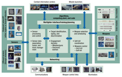 大多数海军战舰都有能够进行空中和导弹防御的作战系统。这些作战系统可以用 "探测-控制-交战"的模式来很好地描述;也就是说,作战系统的各个组成部分在概念上可以归类如下:
