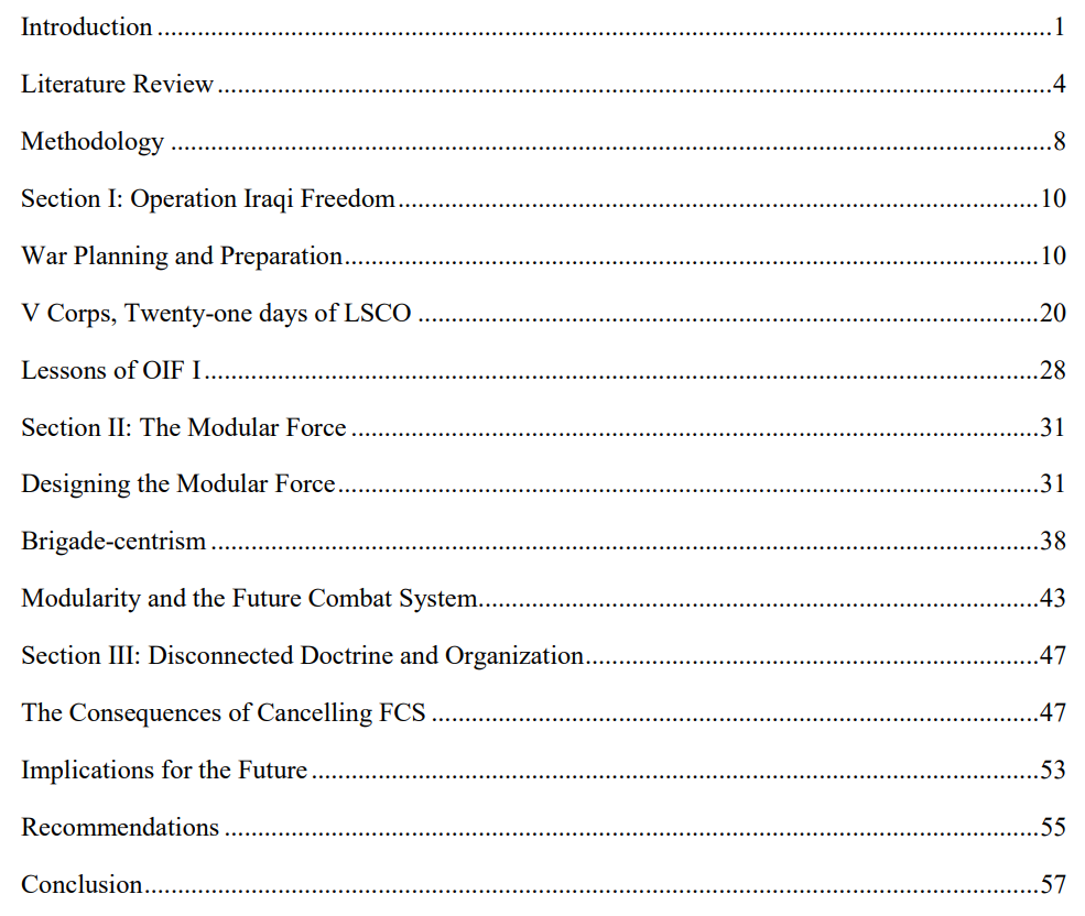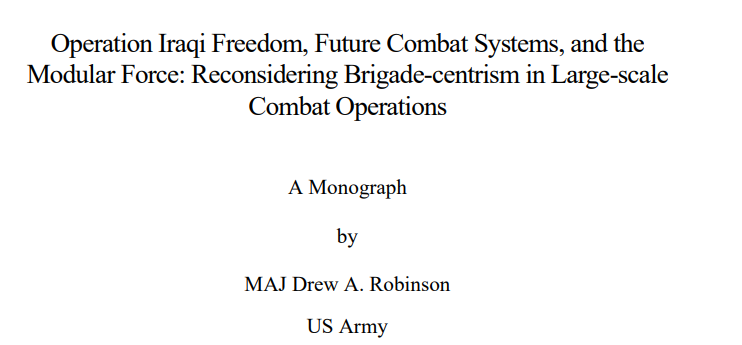 本文旨在为围绕美陆军如何打好下一场大规模作战行动的讨论补充背景资料。"伊拉克自由行动"、"模块化部队 "和 "未来作战系统"(FCS)相互关联的经验教训为未来部队的设计提供了启示。在参与全球反恐战争的同时对陆军进行转型,在没有明确未来作战概念的情况下,陆军采用了技术驱动的组织解决方案--FCS。模块化带来了以旅为中心的概念,这与 20 世纪以师为中心的陆军大相径庭。FCS技术旨在创建像师一样作战的旅,可能会带来一种新的作战概念。陆军接受了这种组织模式的风险,假设其旅将通过未来战斗系统的实战化进行重组。由于这一假设是错误的,陆军在制定未来作战概念时必须重新审视旅为中心的思想。