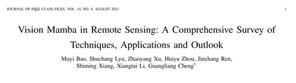 关键词—视觉Mamba,遥感,综合综述,状态空间模型,扫描策略