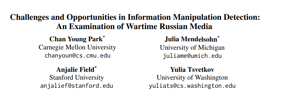 有关舆论操纵活动的 NLP 研究主要集中于检测假新闻和虚假信息等公开策略。然而,正在进行的俄乌战争中的信息操纵活动体现了政府和媒体如何运用更细微的策略。本文发布了一个新的数据集 VoynaSlov,其中包含俄罗斯媒体在 Twitter 和 VKontakte 上发布的 3800 多万条帖子,以及 2022 年俄乌战争前夕和战争期间的公众活动和回应。我们在 VoynaSlov 上应用了标准的和最近开发的 NLP 模型,以研究议程设置、框架和引导(信息操纵的几种基本策略),并揭示了不同媒体控制、社交媒体平台和时间之间的差异。对这些媒体效应的研究以及对当前方法局限性的广泛讨论,鼓励了进一步开发 NLP 模型,以了解新兴危机中的信息操纵,以及其他现实世界和跨学科任务。