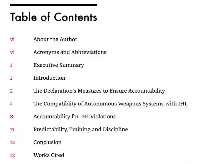 最后,在确定指挥和国家责任的条令对于维持武装部队使用人工智能的问责制至关重要之后,第四部分认为,真正的工作是界定军事指挥官需要什么来依赖和部署他们承担法律责任的人工智能系统。答案有三个方面:可预测性、培训和纪律。为此,建议加拿大在发展和部署人工智能时,应重点发展或重新配置现有条令,以满足这些要求。