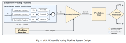 小型无人驾驶航空器系统(sUAS)是一种易于获取的技术,对美国关键系统的威胁越来越大。它们体积小、重量轻、难以探测,这使得小型无人机系统可以提供侦察、投放爆炸物,甚至撞击敏感目标。这种具有威胁性的技术要求使用容错、低成本、可更换和精确的传感资源,以应对无人机系统无处不在的特性。因此,本文开发的方法是利用手机等可获取的传感资源来探测和跟踪 sUAS。这项研究工作源于空军研究实验室(AFRL)的一次数据收集,在这次数据收集中,无人机飞越了记录时间戳声学数据的手机群。在第一项工作中,开发了一种基于声学传感器网络的 SUAS 检测方法。该方法使用一个集合表决管道(EVP),融合来自分散在机场各处的 28 部手机的时间同步、低保真声学数据,以做出实时无人机探测决策。这项工作在模拟测试场景中实现了 0.846 的探测 F1 分数。该管道的性能还优于传感器网络中每部手机对无人机的检测性能,后者的平均检测 F1 分数为 0.582。
