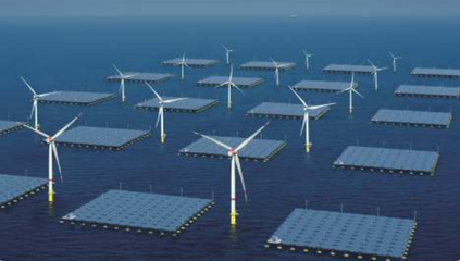 太阳能作为优质的清洁能源,是我国能源产业发展重点。从陆地延伸到水面,再向空间更广阔、资源更丰富的海洋发展,光伏下海是光伏产业发展的必然趋势。海上光伏可利用海洋空间广阔,不占用土地资源,不受地形、建筑遮挡;海水对光伏板具有冷却效果,结合水面对阳光的反射,可提高光伏发电效率;海上光伏距离电力需求较高的东部沿海地区更近,输电损耗更低;光伏平台的平面特征和发电特点,使其既可独立发电也能够与海上风电、波浪能、潮流能等其他海洋能源融合发展,实现高效互补的综合利用。 鉴于光伏面板的生产已经拥有一个高度发达的生产链,业界预计海上光伏产业发展速度将比海上风电产业更快。国际可再生能源署预测海上光伏将在2025年后进入生产规模扩大的阶段,现有示范项目预计于2025年达到50MW左右的规模,海上光伏产业有潜力在2030年形成年度新增安装产能达1GW的新兴产业。目前,国内海洋光伏的项目储备已经超过500万kW,例如安徽淮南漂浮式光伏项目(见图9)。 注:图片来源于搜狐网图9 安徽淮南漂浮式光伏项目 天津、广西、江苏、河北、山东、浙江、福建等省份的重点区域都有相应的项目规划。其中《关于促进浙江省新能源高质量发展的实施意见(修改稿)》特别提到,鼓励光伏风电用海立体分层设权,拓展海域立体利用空间,鼓励利用围海养殖区、近海滩涂区、围而未填海域等海域空间建设滩涂光伏项目。《山东省海上光伏建设工程行动方案》意见建议明确了海上光伏的建设方案,布局“环渤海”“沿黄海”两大千万千瓦级海上光伏基地,总规模4200万kW以上,加快桩基固定式海上光伏开发,积极稳妥推动漂浮式海上光伏发展,打造“风光同场”一体化开发模式。 海上光伏将经历一个由近及远的发展过程,从最适合起步的避风海域开始发展,然后随着技术和产业链的成熟,逐渐扩展到更深更远的海域,进入更恶劣的环境。目前,海上光伏的技术仍处于起步阶段,如何从技术层面控制风险、优化投资,还需要更基础的研究探索。现阶段海上光伏平台主要采用固定式和漂浮式两种基础形式:固定式基础在浅水区和潮间带具有较好的经济性,但向深水发展面临巨大的安全性和经济性挑战,漂浮式基础则因具备出色的海域适应性而成为必然选择。近年来我国近海新能源开发空间日渐紧张,漂浮式光伏平台是未来海上光伏产业向深远海规模化发展的重点发展方向。 目前市场上已经出现了近十个海上漂浮式光伏平台的概念设计,大多源自欧洲的创新企业,例如德国SinnPower海上风电光伏融合发展概念设计(见图10)。有几个概念已进入海洋环境的示范阶段,但规模均没有超过0.5MW。对于未来的示范,有多家公司宣布了明确的兆瓦级示范项目,规模在2~4MW之间,预计在2~3年内对技术可行性和经济性做出验证,并在随后进入规模化项目示范阶段。