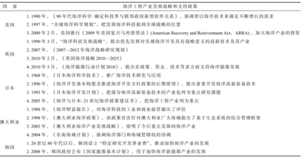 表1 国外各国的海洋工程产业发展战略与支持政策