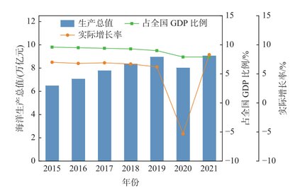 注:数据来源于《2021年中国海洋经济统计公报》图6 2015年至2021年中国海洋油气业生产总值