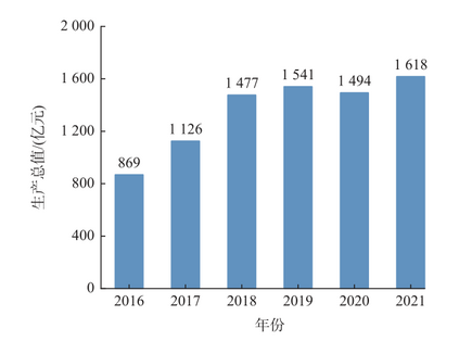 从1956年莺歌海油气田调查算起,我国海洋油气资源开发至今已经走过了60多年的发展历程。我国海洋油气工程经历了二十世纪六七十年代的开发能力、装备设计制造落后阶段,八九十年代的引入国际标准、实现技术突破阶段,以及进入21世纪后的开发能力迅速提升、迈向国际市场阶段。随着经济社会发展,我国油气资源对外依存度持续攀升,2021年石油对外依存度超过70%,天然气对外依存度高达45%。而我国南海深水区油气资源丰富,因此,聚焦深水油气田勘探与开发,是保障国家能源安全的战略需求,也是我国石油工业自身发展的现实需要。 随着“海洋石油981”(见图5)、“蓝鲸1号”深水半潜式钻井平台、“海洋石油201”深水铺管起重船、“海洋石油701”大型深水综合勘察船、“海洋石油751”震源船、“深海一号”深水半潜式生产储卸油平台等深水装备的相继投入使用,我国深海油气勘探开发能力得到了大幅提升,海洋油气行业随之得到长足发展(见图6)。《2021年中国海洋经济统计公报》显示,2021年海洋油、气产量分别比上年增长6.2%和6.9%,海洋原油增量占全国原油增量的78.2%,有效保障了我国能源稳定供给和安全。 注:图片来源于央视网图5 海洋石油981深水半潜式钻井平台