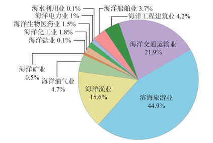 注:数据来源于《2021年中国海洋经济统计公报》图4 2021年主要海洋产业增加值构成 基于国内海洋工程发展现状,我国应在把握发展机遇的同时,正视海洋工程发展与国际先进水平的差距,进行系统的梳理和总结,确定重点发展方向,做好战略布局,才能取得更加长远的发展和进步,成为实现海洋可持续发展和推动我国海洋经济高质量发展的重要引擎。