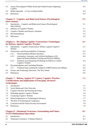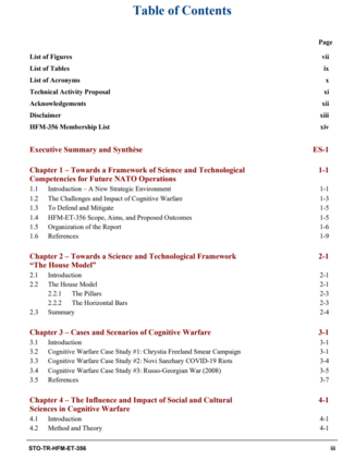 本报告为北约科技组织内部的未来研究、盟国和国家科技投资提供了指导,以防御当前和未来的认知战争,并加强北约的技术优势和对抗认知战争的战略优势。HFM ET-356的工作支持了北约作战顶点概念及其认知优势的战争发展倡议,以及2022年北约马德里峰会上宣布的新的北约战略概念。
