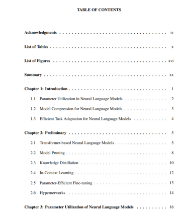 近年来,预训练的神经语言模型在各种自然语言理解和生成任务上取得了显著的能力。然而,将这些模型扩展到包含数十亿参数的趋势,虽然增强了适应性和新出现的能力,但也因其庞大的规模带来了显著的部署挑战。这些挑战包括对模型存储和实际部署的推理延迟的限制、任务适应所需的密集时间和计算成本,以及影响任务适应性的大量冗余参数的存在。受到这些挑战的驱动,本论文旨在提高这些模型的参数效率,寻求最小化存储需求、加速推理和适应,并增强泛化能力。