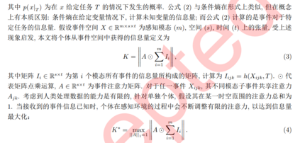 从公式 (4) 中可看出, 当注意力集中在模态密集的时空事件时, 获取的信息量达到最大值. 因此, 个 体可以利用多模态时空数据获取更多信息