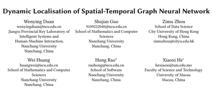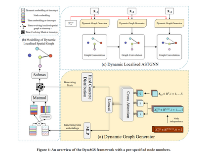 时空数据是许多智能应用的基础,它揭示了当前特定位置的测量值与相同或其他位置的历史数据之间的因果关联。在此背景下,适应性时空图神经网络(ASTGNNs)作为建模这些依赖关系的有力工具,尤其通过数据驱动的方法,而非预定义的空间图,已得到了广泛应用。尽管这一方法提供了更高的准确性,但也带来了更高的计算需求。为了解决这一挑战,本文深入探讨了ASTGNNs中的定位概念,并提出了一种创新的视角,即空间依赖关系应当随着时间动态演化。我们提出了DynAGS,一种本地化的ASTGNN框架,旨在最大化分布式部署中的效率和准确性。该框架集成了动态定位、时变空间图和个性化定位,所有功能围绕动态图生成器这一轻量级中央模块进行协调,该模块利用交叉注意力机制。中央模块能够以节点无关的方式集成历史信息,增强当前时刻节点的特征表示。随后,改进后的特征表示用于生成动态稀疏图,无需进行昂贵的数据交换,同时支持个性化定位。通过在两种核心ASTGNN架构和九个来自不同应用领域的真实数据集上的性能评估,结果表明DynAGS超越了现有的基准方法,突出表明时空依赖关系的动态建模可以显著提升模型的表现力、灵活性和系统效率,特别是在分布式环境中。