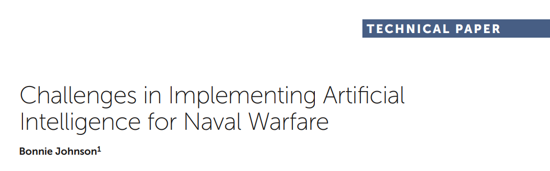 人工智能系统为海军战术决策的优势提供了相当大的进步潜力。然而,人工智能系统在海战应用中的实施带来了重大挑战。人工智能系统与传统系统不同--它们是非决定性的,可以学习和适应--特别是在用于更复杂的行动时,如高度动态的、时间关键的、不确定的战术行动环境中,允许的误差范围极小。本文确定了为海战行动实施人工智能系统的四个挑战领域:(1)开发能够解决战争复杂性的人工智能系统,(2)满足人工智能系统开发和运行的数据需求,(3)设计这些新颖的非确定性系统,以及(4)面对对手带来的挑战。