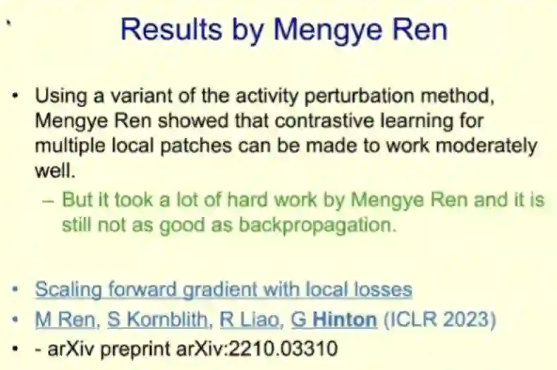 实际上这正是 Hinton 团队近些年最重要的研究成果之一,详情可参阅机器之心的报道《放弃反向传播后,Geoffrey Hinton 参与的前向梯度学习重磅研究来了》。