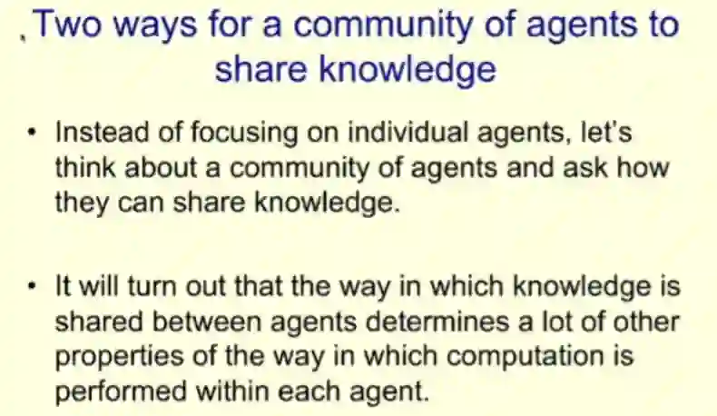当多个智能体构成的社群互相共享知识时,共享知识的方式能在很大程度上决定计算执行的方式。