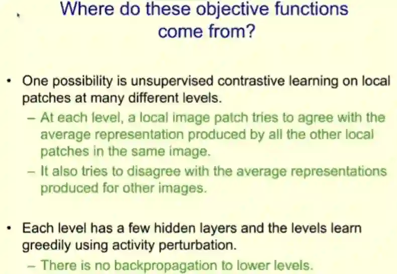 第一种方法是使用巨量目标函数,也就是说不使用单个函数来定义大型神经网络的目标,而是使用大量函数来定义网络中不同神经元集团的局部目标。