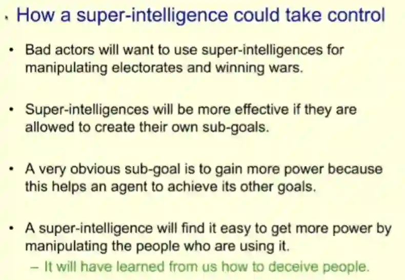 比如不良行为者可能会利用超级智能来操控选举或赢得战争(实际上现在已经有人在用已有 AI 做这些事情了)。