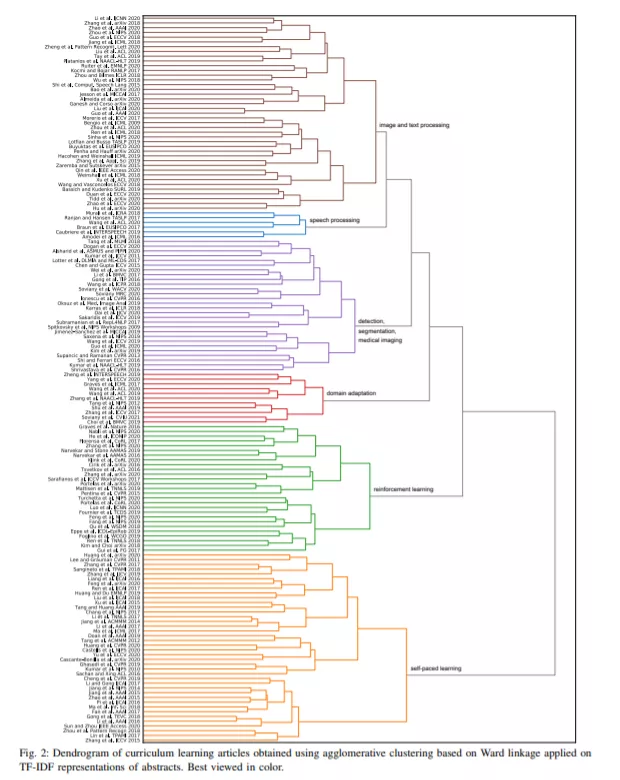 **从简单的样本到困难的样本,以一种有意义的顺序,使用课程学习可以提供比基于随机数据变换的标准训练方法更好的性能,而不需要额外的计算成本。**课程学习策略已成功地应用于机器学习的各个领域,广泛的任务。然而,必须找到一种方法来对样本从容易到难进行排序,以及正确的节奏函数来引入更难的数据,这可能会限制课程方法的使用。在本综述中,我们展示了这些限制是如何在文献中被处理的,并且我们为机器学习中的各种任务提供了不同的课程学习实例。我们根据不同的分类标准,手工构建了一个多角度的课程学习方法分类。我们进一步使用凝聚聚类算法建立课程学习方法的层次树,将发现的聚类与我们的分类方法联系起来。最后,我们对未来的工作提出了一些有趣的方向。