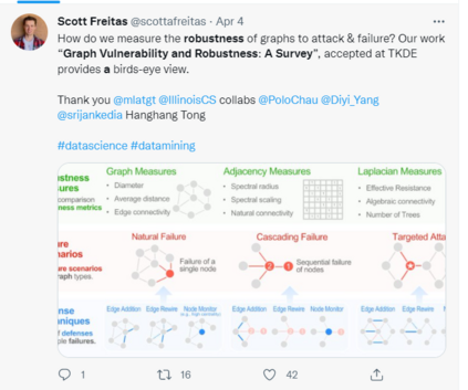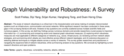 【导读】图机器学习是当下的研究热点。围绕图网络的鲁棒性研究是一个关键的问题。来自佐治亚理工最新《图脆弱性与鲁棒性》综述论文,提炼了许多领域的关键发现,包括图鲁棒性度量、网络攻击策略和防御技术。