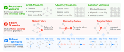 本文对所做的工作进行了视觉概述。§2总结并比较了17种图鲁棒性度量。§3概述了网络故障和攻击的方法。§4总结了跨越各种图拓扑和攻击向量的网络防御技术。