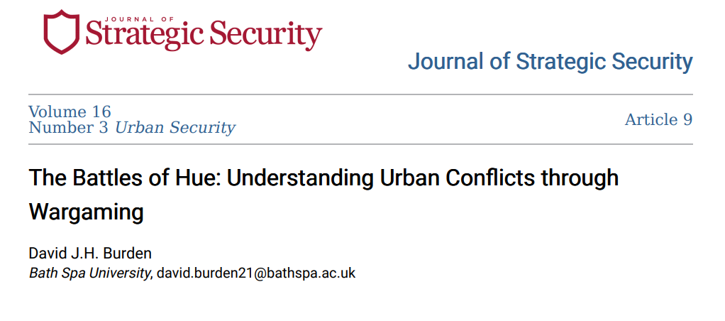 近年来,人们对专业使用兵棋推演的兴趣日益浓厚,兵棋推演是一种潜在的工具,可以使人们更好地了解过去的城市冲突,并对未来的城市安全进行规划。虽然接触专业兵棋推演的机会有限,但业余兵棋推演已被确定为有用且密切相关的研究领域。以前的工作已经确定了大约 214 个涉及城市冲突的手工业余兵棋推演,但只有 5 个战役被 5 个或 5 个以上的兵棋推演所涵盖,因此为比较审查提供了合理的样本。顺化战役具有现代城市战役的许多特征,包括对称和非对称对抗、联合武器、平民和媒体存在以及创新技术的使用。本文研究了 6 位不同的兵棋推演设计者是如何处理顺化战役的,以及他们的设计选择与顺化战役主要特征的关系。文章还指出了主要的不足之处。文章最后考虑了这些游戏所强调的兵棋推演在表现城市冲突方面存在的问题,以及如何解决这些问题,以使兵棋推演成为模拟城市冲突和安全的更有用的工具。