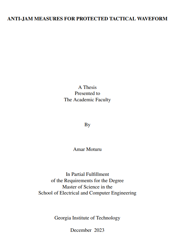 本论文深入探讨了军用卫星通信系统为抵御敌方干扰威胁而可采用的各种现行和新型措施。特别是,本论文试图通过重点改进受保护战术波形标准的各种规格,探索提高受保护战术卫星通信性能的技术。由于 "受保护战术波形 "与 DVB-S2 相似,这些抗干扰技术首先在现有的 DVB-S2 平台上进行测试,然后再移植到以 "受保护战术波形 "为模型的平台上。