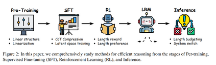 本综述系统梳理了当前提升大推理模型效率的研究进展,重点关注这一新范式下的独特挑战。我们总结了低效性的常见模式,分析了从预训练到推理全生命周期中提出的优化方法,并探讨了未来潜在的研究方向。为支持领域发展,我们同步维护了一个实时GitHub仓库,追踪最新研究成果。希望本文能为后续探索奠定基础,并激发这一快速发展领域的创新。