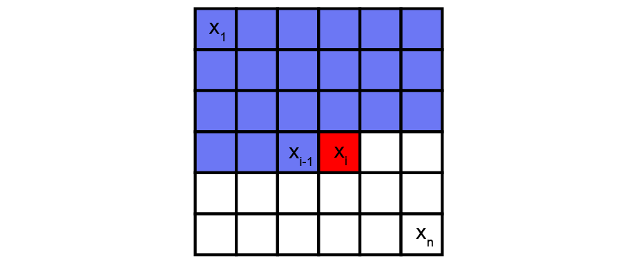 自回归是一种实用的方法,它提供了似然函数的显式建模。但是,要对具有多个维度/特征的数据进行建模,自回归模型需要更多条件。首先,输入空间X需要为其特征确定顺序。这就是为什么自回归模型通常用于具有固有时间步长序列的时间序列。但是,可以通过定义(例如)左侧的像素在右侧的像素之前,顶部的像素在底部的像素之前来将它们用于图像。其次,为了对数据观察中的特征的联合分布(p(x))进行精确建模,自回归方法将p(x)转换为条件分布的乘积。给定先前特征的值,自回归模型使用每个特征的条件定义联合分布。比如,图像中某个像素具有特定强度值的概率由所有先前像素的值决定;图像的概率(所有像素的联合分布)是其所有像素的概率的组合。因此,自回归模型使用链式规则将数据样本x的可能性分解为一维分布的乘积。分解将联合建模问题变成了序列问题,学习了在给定所有先前生成的像素的情况下预测下一个像素的过程。