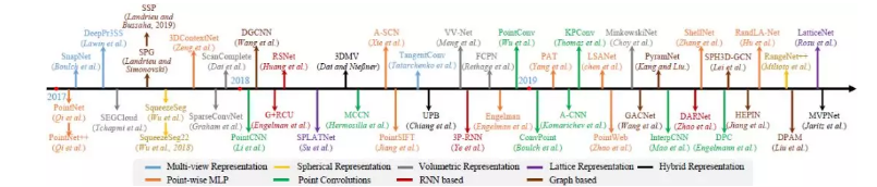 图8:按时间顺序概述了一些最相关的基于深度学习的点云语义分割方法。