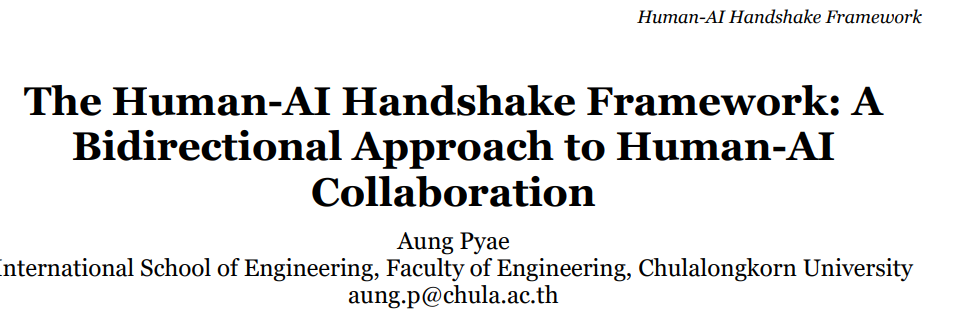 本研究通过提出强调双向协作的人类-人工智能握手框架,填补了现有研究的空白。该框架确定了信息交换等关键的双向属性,并引入了用户体验、道德和可解释性等促进因素,这些因素对于促进有效的人机协作至关重要。握手隐喻将人工智能定位为一个互补的合作伙伴,在提高人类能力的同时确保责任仍由人类主导,从而将富有成效的合作概念化。该框架的基础是对以人为本的人工智能、人-人工智能协作和以用户为中心的设计等方面的文献进行的广泛回顾,通过优先考虑双向互动使其与众不同。此外,对现有人工智能工具的回顾表明,这些工具与拟议的握手框架相吻合,同时也强调了它们的局限性。这些见解为研究议程提供了信息,研究议程包括专家访谈和用户反馈,以完善和验证该框架。本项目旨在通过人类-人工智能握手框架,将人工智能概念化为一种动态的、类似于伙伴的工具,从而推动人类-人工智能合作与互动领域的发展。它旨在为合作创造新的可能性,这种合作不仅可靠、有效,而且有道德基础。