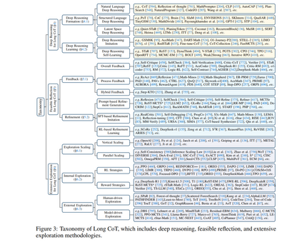 近年来,大型语言模型(RLLMs)在推理领域取得了显著进展,例如OpenAI-O1和DeepSeek-R1,它们在数学和编程等复杂领域中展现了令人印象深刻的能力。其成功的一个核心因素在于长链推理(Long CoT)特性的应用,这种特性增强了模型的推理能力,使其能够解决复杂问题。然而,尽管取得了这些进展,目前仍缺乏对长链推理的全面综述,这限制了我们对其与传统短链推理(Short CoT)区别的理解,也使关于“过度思考”和“测试时间扩展”等问题的讨论更加复杂。本综述旨在填补这一空白,为长链推理提供一个统一的视角。 1. 区分长链推理与短链推理:我们首先明确长链推理与短链推理的区别,并引入一种新的分类法来对当前的推理范式进行分类。 1. 长链推理的核心特性:我们探讨长链推理的三大关键特性——深度推理、广泛探索和可行反思。这些特性使模型能够处理更复杂的任务,并生成比浅层短链推理更高效、更连贯的结果。 1. 关键现象研究:我们研究了长链推理中的关键现象,例如伴随这些特性出现的“过度思考”和“测试时间扩展”,并深入分析这些现象在实际中的表现。 1. 未来研究方向:最后,我们指出了当前研究中的重要空白,并强调了未来的潜在方向,包括多模态推理的整合、效率提升以及知识框架的优化。通过提供结构化的综述,本文旨在启发未来的研究,并推动人工智能逻辑推理的进一步发展。