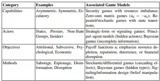 表2网络战争的博弈论分类:参与者定义玩家N,能力塑造行动Ai,目标定义收益ui,方法选择适当的游戏结构。