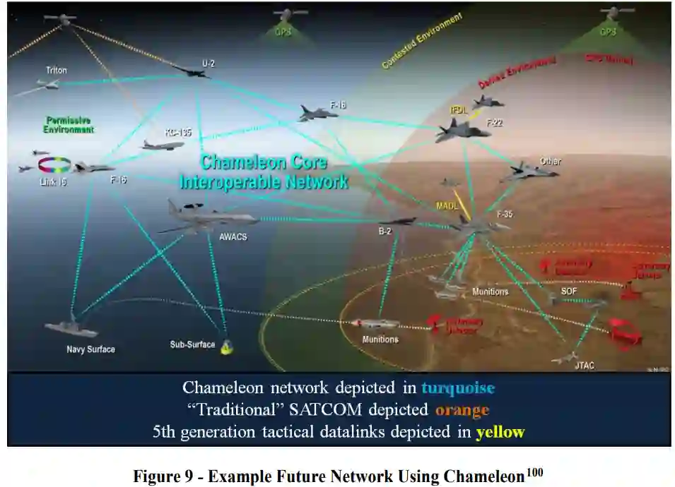 最初的实地部署将在高空机群内进行,但会尽快扩展到能够容纳 SDR、处理器或适当中继天线的其他平台。一旦 ISR 企业展示了稳定、标准化、先进的 MMN 的威力,其他平台也应尽快采用必要的硬件、天线和接口。多用途网络节点 "第二波 "的优先事项应是网络包容,而不一定是硬件和软件实施。也就是说,将第五代平台连接起来,并将它们在作战空间(通过专门的侦察任务或 "非传统 ISR")运行时提供的精美数据纳入其中,将是一个优先事项。然而,由于对 LO 表面进行改动既昂贵又困难,因此要快速纳入网络可能需要一些节点在初期充当 "翻译器 "和 MLS 网关。将第五代和LO资产纳入网络将把网络覆盖范围扩展到有争议和被拒绝的空域,使数据能够在战斗中的前沿资产之间流动,通过具有极大LOS优势的ISR平台和机载处理器,传输到AOR中的C2和决策者。