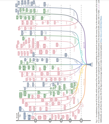 这项综述的独特边界使其不同于其他关于LLMs和分子、蛋白质和基因组计算建模的回顾。与主要集中在自然语言[281, 304]的那些不同,我们的重点更倾向于科学语言。与仅专注于分子[64, 269]、蛋白质[23, 105, 241, 246]或基因组数据[52]的综述不同,我们旨在提供一个关于化学和生物研究的语言模型的全面视角。此外,我们深入探讨了多模态LLMs,探索文本与分子/蛋白质/基因组语言之间的互动。据我们所知,这种微妙的探索在以前的综述中尚未涵盖。本综述的贡献可总结如下: • 我们提供了一个关于科学领域内语言建模的全面回顾,包括文本、分子、蛋白质和基因组语言,强调领域特定知识。 •我们提供了现有Sci-LLMs的详细总结,涵盖了模型架构、能力、训练数据、评估基准和评估标准。我们还在图3中展示了Sci-LLMs的演化树。 • 我们列举了Sci-LLMs的可用资源,开源并在https://github.com/HICAI-ZJU/Scientific-LLM-Survey上维护相关材料,从而方便新入行者的访问。 •** 据我们所知,这项综述代表了第一个全面概述多模态Sci-LLMs的尝试**,旨在探索各种科学语言之间的互动。 本综述的其余部分组织如下:第2节介绍LLMs的背景并阐述相关概念。第3、4、5、6和7节分别介绍文本、分子、蛋白质、基因组和多模态LLMs。最后,在第8节中,我们分析了现有模型的局限性,指出潜在的研究方向,并总结本综述。
