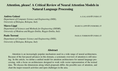 NLP注意力机制综述论文翻译,Attention, please! A Critical Review of Neural Attention Models in Natural Language Processing