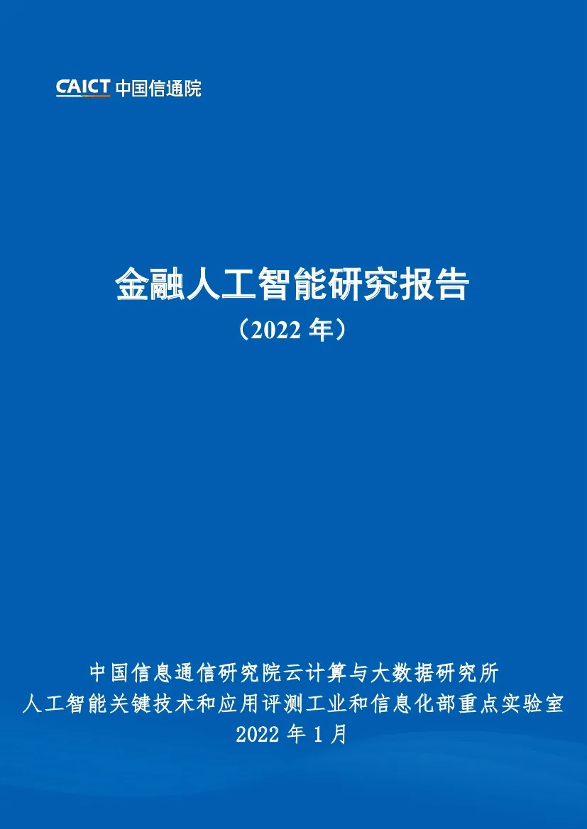 2022年1月14日,中国信息通信研究院(以下简称“中国信通院”)召开“可信AI成果发布会”。会上发布了《金融人工智能研究报告(2022年)》。