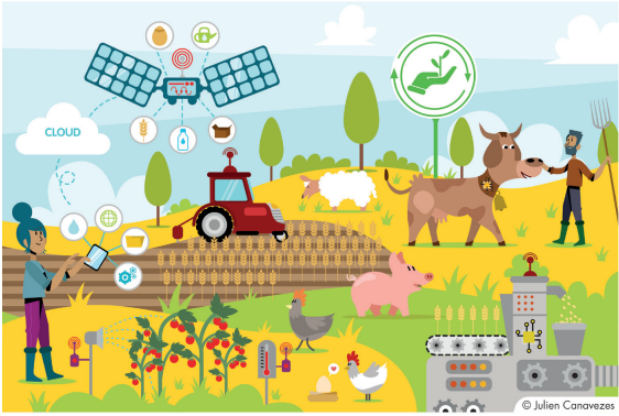 在世界范围内,由于外部压力(气候变化、价值链组织等)和内在因素(创新、农民数量减少等),粮食系统正在发生深刻变化。粮食安全是全球关注的第一大问题,今天伴随着对生产方法变得更加可持续的强烈需求,以及保护以农业为基础的农村生活结构的强烈需求。这就是为什么正如粮农组织提醒的那样[1],农业生态在法国等越来越多的国家中是一个至关重要的问题。在这些变化的同时,农业和所有经济部门一样,新兴数字技术的应用激增。自 2010 年年中以来,“数字农业”的概念就出现了。它既定义了一种农业文化形式,也定义了使用数字科学和技术的食品系统。例如数据科学和技术,包括采集(卫星、传感器、连接对象、智能手机等)、传输和存储(3G/4G/5G 覆盖、低速地面或卫星网络、云)和机载或远程处理(可通过超高速通信网络访问的超级计算机、人工智能)等,应用于农业生产及其生态系统的各个层面:农场、支持服务、地域、价值链 [2]。