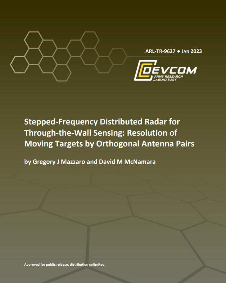 作者正在研究分布式雷达在穿墙感应中的应用。这项技术的预期操作场景是在建筑物外的(安全)远程距离内探测和识别建筑物内的人员和武器装备。本研究使用的雷达结构和信号处理算法类似于美国陆军作战能力发展司令部(DEVCOM)陆军研究实验室(ARL)实施的埋藏和隐蔽表面目标探测的设计;目前的雷达发射和接收频率更高。