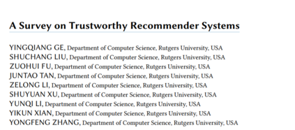 然而,RS有利有弊,它既可能带来希望,也可能带来风险。越来越多的人担心,不负责任地使用推荐技术可能会带来反作用和不可信的问题,例如不透明导致用户信任受损,不同用户、生产者或平台受到不公平对待,大量使用用户隐私数据进行个性化带来的隐私问题,用户缺乏可变性导致用户已有兴趣的反复强化而产生的回音室——这些问题还在继续扩大。这些漏洞极大地限制了推荐算法的开发和部署,甚至可能导致严重的经济和社会问题。因此,在开发现代推荐系统时,仅仅考虑推荐准确度是不够的。我们还需要确保模型是公平的,没有被篡改,不会在不同的条件下崩溃,可以被人类理解。此外,RS的设计和开发过程也需要透明和包容。除了准确性之外,所有这些使推荐系统安全、负责、值得我们信任的考虑因素都与值得信赖的推荐系统研究有关。由于推荐系统是以人为中心的人工智能研究的一个重要方向,直接涉及到人类的循环,值得信赖的推荐系统(TRS)在过去的几年里一直领导着值得信赖的人工智能(TAI)的研究,包括可信性、公平性、鲁棒性、隐私等方面的定义、方法和评估,以及人类如何与值得信赖的人工智能系统进行交互。