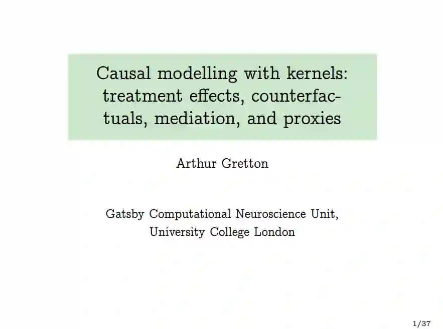 一个基本的因果建模任务是在观察到的协变量X存在的情况下,预测干预(或治疗)D= D对结果Y的影响。我们可以通过边缘化条件平均值E(Y|X,D)除以P(X)的估计得到平均治疗效果(ATE:干预D的预期结果)。更复杂的因果关系问题需要更细致的处理。例如,被治疗者的平均治疗(ATT)处理的是一个反事实:对接受d治疗的亚群体进行d'治疗的结果是什么?在这种情况下,我们必须在条件分布P(X\d)上边缘化\gamma,这对连续多变量d来说是一个挑战。许多附加的因果问题要求我们在条件分布上边缘化,包括条件ATE、中介分析、动态治疗效果,以及使用代理变量对未观察到的混杂因素进行校正。我们在非参数设置中使用核方法来解决这些问题,核方法可以应用于非常一般的处理D和协变量X(连续多元,字符串,组,…)我们通过核脊回归学习\gamma,并使用核条件均值嵌入对条件分布进行边缘化,这可以被认为是两阶段最小二乘的推广。我们在一般平滑假设下提供了强大的统计保证,并提供了直接而稳健的实现(几行代码)。