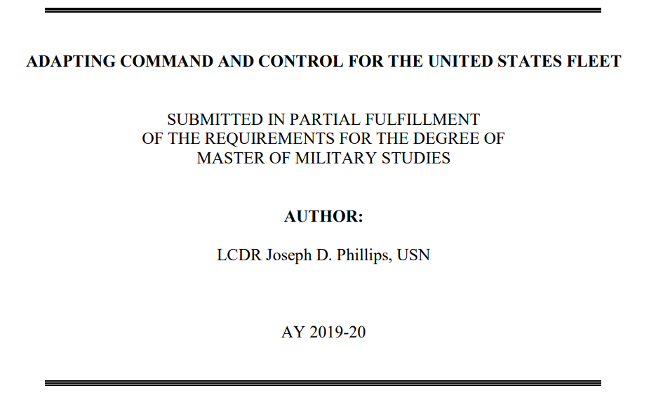 美国海军和海军陆战队缺乏必要的共同指挥和控制结构,无法建立统一指挥,也无法联合开展近海所需的海上拒止和海上控制行动。为了整合 21 世纪的海军舰队,海军部必须在舰队指挥官的行动控制下建立常设海军陆战队特遣部队,并在战术层面将舰队海军陆战队纳入合成作战司令部(CWC)组织。