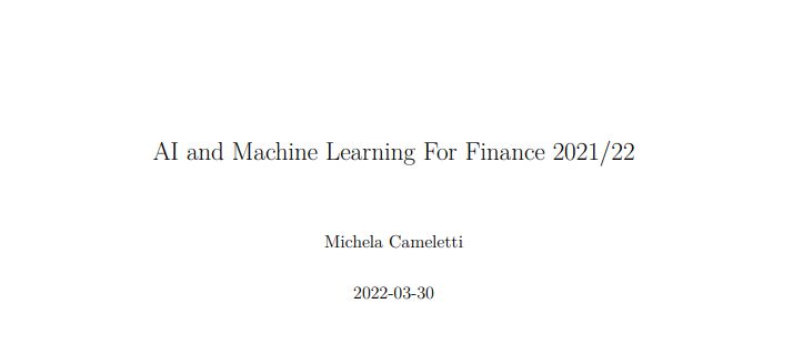旨在提供尖端人工智能和机器学习 (ML) 工具知识,用于对定义在高维空间中且以非线性关系为特征的金融数据进行建模。特别是,通过考虑金融数据的特殊性来自动检测数据中的模式(即从数据中“学习”)。然后,分析师和投资者可以使用估计的模型在不确定和风险条件下做出决策并选择投资策略。