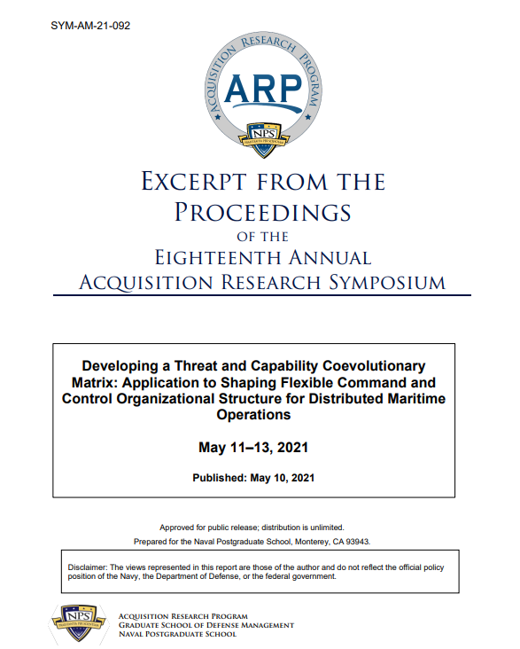 美国负责采购和维持的国防部副部长办公室(OUSD A&S)的任务是快速和低成本地向作战人员和国际合作伙伴提供和维持安全和有弹性的能力。现在迫切需要开发适应性采购框架(AAF),以加快软件开发和采购流程,加强作战概念(CONOPS),如分布式海上作战(DMO)。国防部(DoD)必须利用与国防战略和全球威胁的性质相联系的数据驱动的分析来塑造AAF,并扩展新的能力来应对新的威胁。威胁和能力共同演化矩阵(TCCM)解决了这一要求。威胁是一种能力试图处理的问题。一种能力是代表威胁的问题的解决方案。共同进化算法探索了一些领域,其中一个能力或能力组合的质量由其成功击败一个威胁或威胁组合的能力决定。TCCM有可能在新的和有争议的环境中系统地优化、推荐和共同演化能力和威胁。我们展示了一个关于帮助项目执行办公室(PEO)使用从公开来源汇编的非机密数据对特定领域DMO的能力和威胁进行战役的用例。