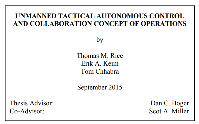 MCWL 邀请海军研究生院协助对UTACC 概念进行探索性研究,以实现 "以决策为中心、半自主、分布式、多代理、多领域机器人系统 "的愿景(SOW,2014 年,第 1 页)。