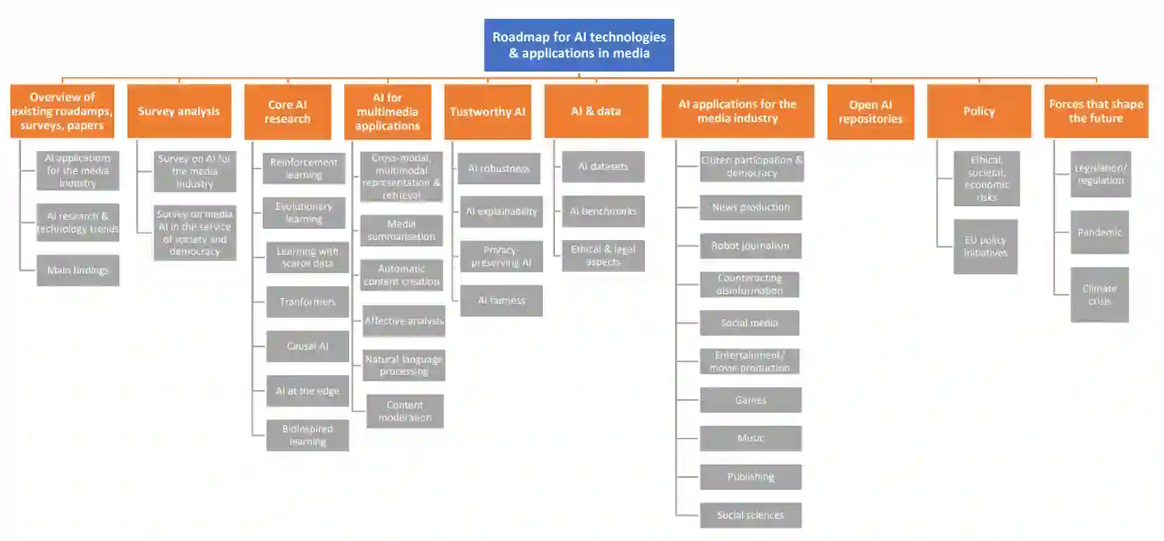 图 6:媒体行业人工智能路线图结构和涵盖的各种主题的概述。