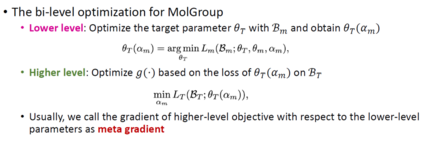 我们建议使用路由机制来动态分配每个辅助数据集对网络子层目标数据集的影响。路由机制的学习取决于辅助数据集的梯度如何影响目标数据集的性能。然而,以目标数据集感知的方式优化这种路由机制具有挑战性,因为它仅在辅助数据集的前向传递期间使用。为了解决这个问题,我们建议使用双层优化框架,并使用元梯度(meta gradients)来自动学习任务的相似度。双层优化框架分为两个步骤:首先,利用辅助任务的梯度更新除路由函数外的模型参数;其次,我们重用这个计算图并计算路由机制的元梯度。