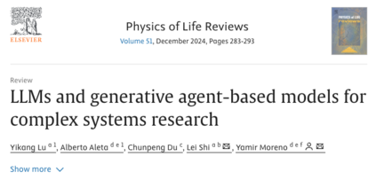 关键词:大语言模型(LLMs),生成式智能体模拟(GABMs),复杂系统,网络科学,合作博弈,社会动力学,流行病建模********************************